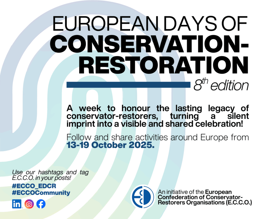 E.C.C.O. (European Confederation of Conservator-Restorers Organisations) poziva sve konzervatore-restauratore iz cijele Europe da otvore svoja vrata javnosti tijekom ovogodišnjih Europskih dana konzervacije-restauracije (EDCR).